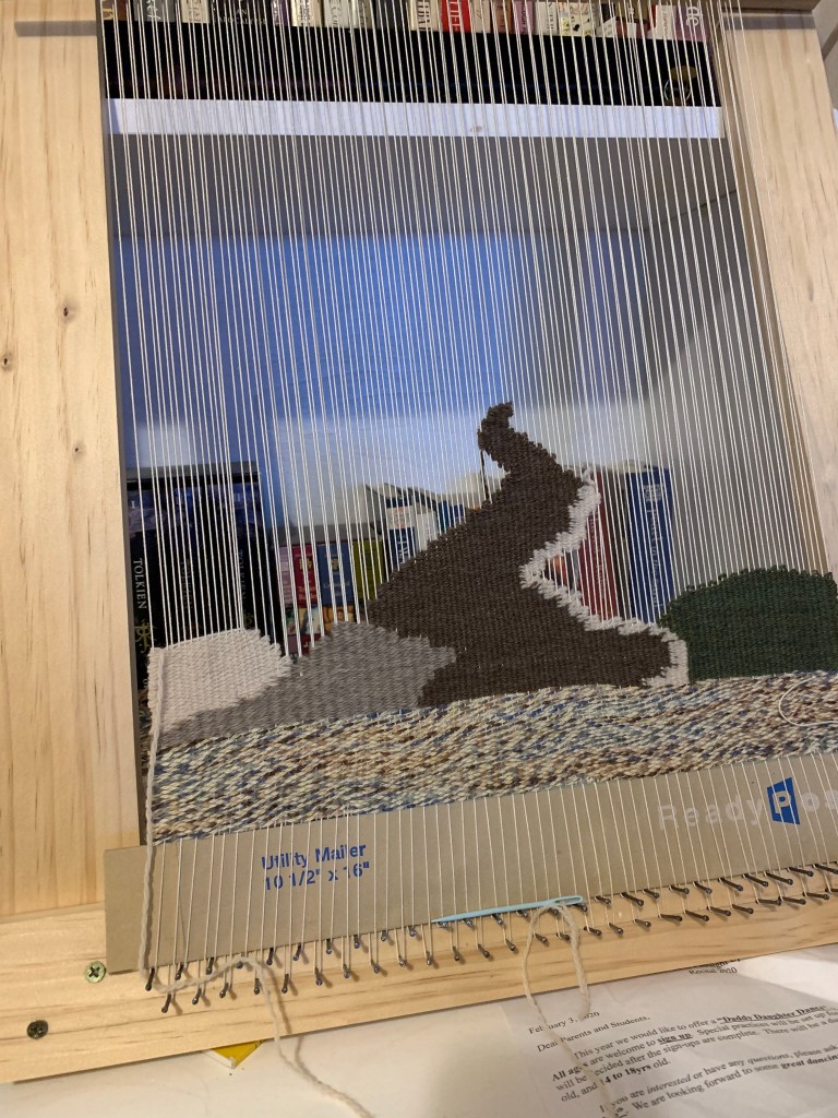 And I’m in love. How haven’t I been weaving my whole life? It’s like coloring, which by the way I also enjoy greatly, but with yarn. The phrase, “Match made in heaven,” comes to mind. Up until this week, I knew little about weaving. So, the learning curve has been steep. But I’m soaking it all up, thanks to the generosity of other weavers on YouTube. I stumbled upon one video from a group of tapestry makers who are based at the Getty Museum, the site of a grand tapestry organization dating back to King Louis XIV outside Paris. These men and women are creating massive, handwoven tapestries, some taking multiple years to create. And they are breathtaking.